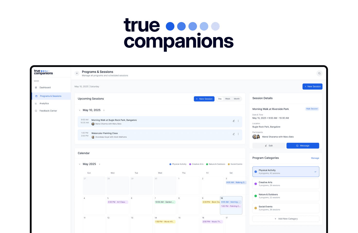 True Companions is a digital service platform designed to support elderly individuals in staying socially connected, emotionally supported, and confidently engaged with the digital world.